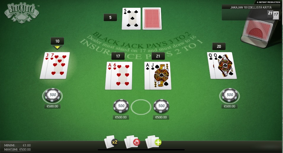 Paras paikka aloittaa blackjackin pelaaminen on ehdottomasti Mr.Green nettikasino. Heillä on tarjolla panoksia senteistä tuhansiin euroihin, suomenkielinen ohjelmisto ja äärimmäisen nopea ja asiantunteva asiakaspalvelu.