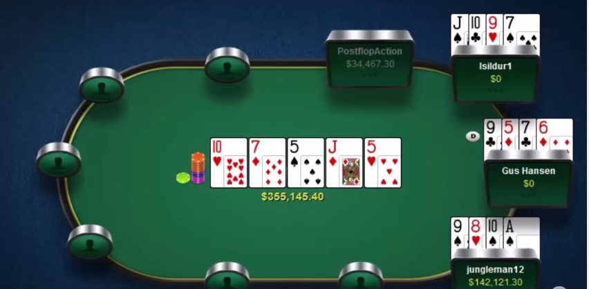 Potit ovat yleensä riverille tultaessa huomattavasti suurempia Omahassa kuin Texasissa. Kuva high stakes 1vs.1 Omaha-pelistä.