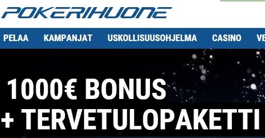 Pokerihuoneen loistavan tervetulopaketin johon kuuluu 1000€ bonus, 30% rakeback ja yhteensä kuusi osallistumisoikeutta 1000€ ilmaisturnauksiin saat lunastettua tämän sivun ylä- tai alalaidassa olevasta ”Avaa ilmainen pelitili” painikkeesta käyttämällä bonuskoodia: POKER1000 talletuksen yhteydessä.